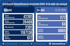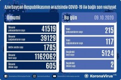 Azərbaycanda bir gündə 230 nəfər COVID-19-a yoluxub, 122 nəfər sağalıb, 1 nəfər vəfat edib