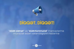 “ASAN xidmət” və “ASAN Kommunal” mərkəzləri 25-26 iyul, 1-2 avqustda işləməyəcək