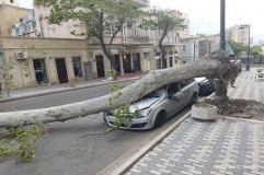 Güclü külək ağacı maşının üzərinə aşırdı - FOTO