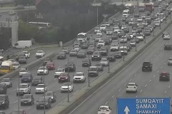 Bakının bir sıra yollarında nəqliyyatın sıxlığı yaranıb