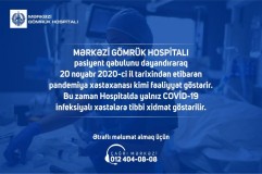Mərkəzi Gömrük Hospitalı pandemiya xəstəxanası kimi fəaliyyət göstərir
