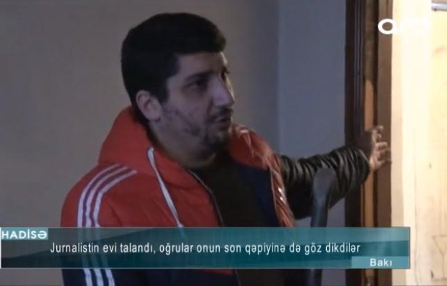 İntiqam Valehoğlu - Zərərçəkən: "Evə gələndə gördüm ki, qapı linklə qırılıb. İçəri daxil oldum ki, televizor yoxdur və mətbəx avadanlıqlarının bir hissəsi aparılıb. Ümumi 1000 manat civarında ziyan dəyib. Həmçinin qapı qırılıb".