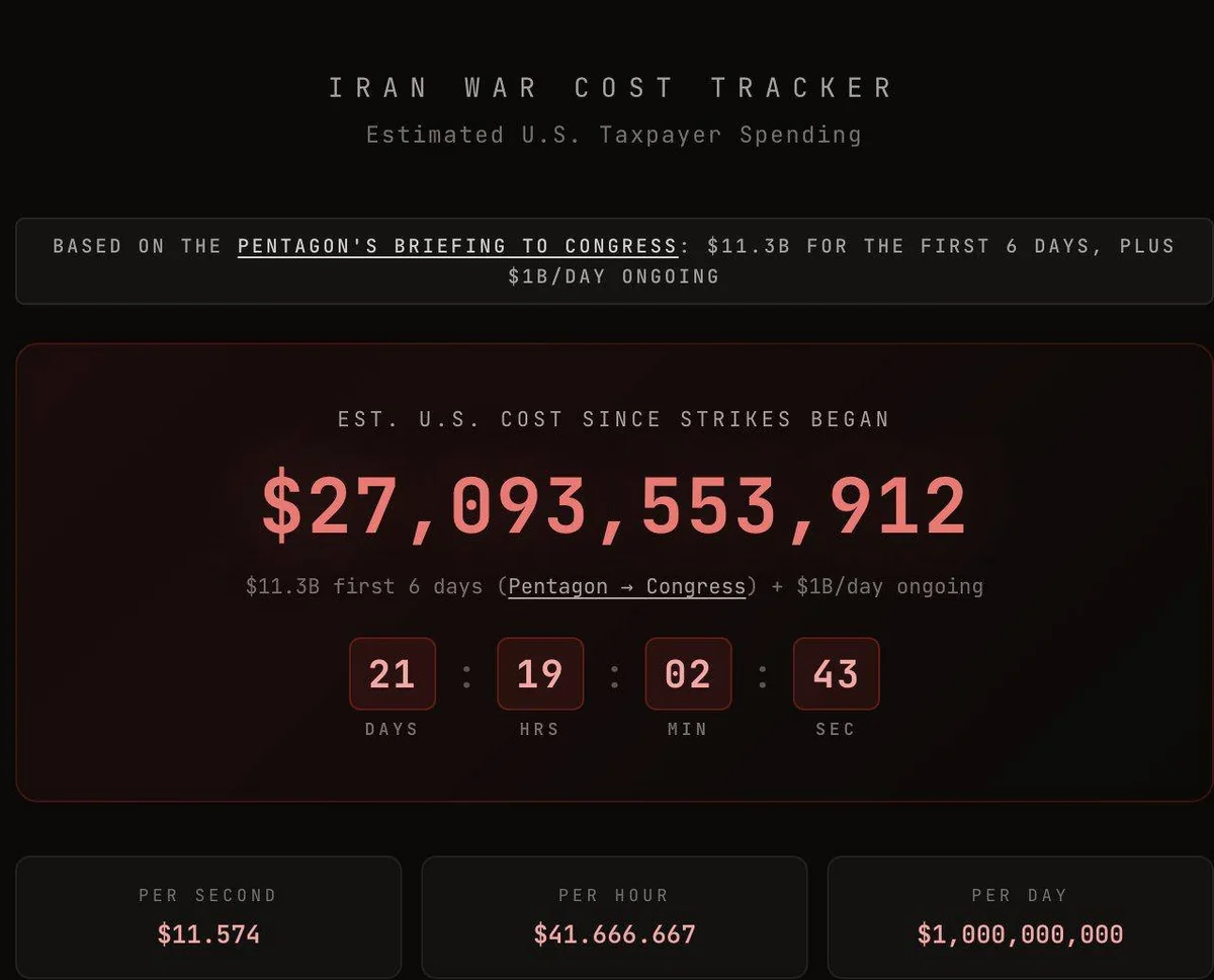 Hesablamalara görə, münaqişənin ilk altı günündə Vaşinqton təxminən 11,3 mlrd. dollar xərcləyib, bundan sonra isə gündəlik xərclər təqribən 1 mlrd. dollar təşkil edib.