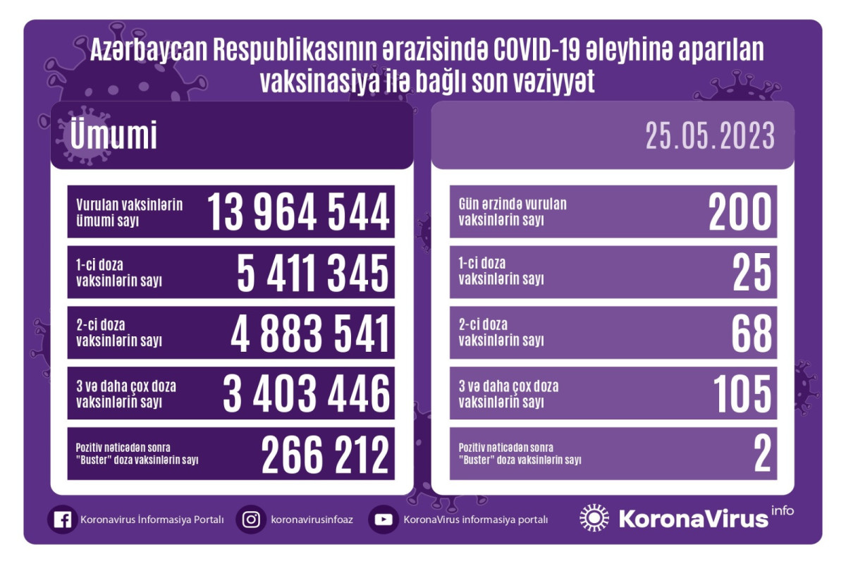 Azərbaycanda son sutkada koronavirus (COVID-19) əleyhinə 200 vaksin vurulub.