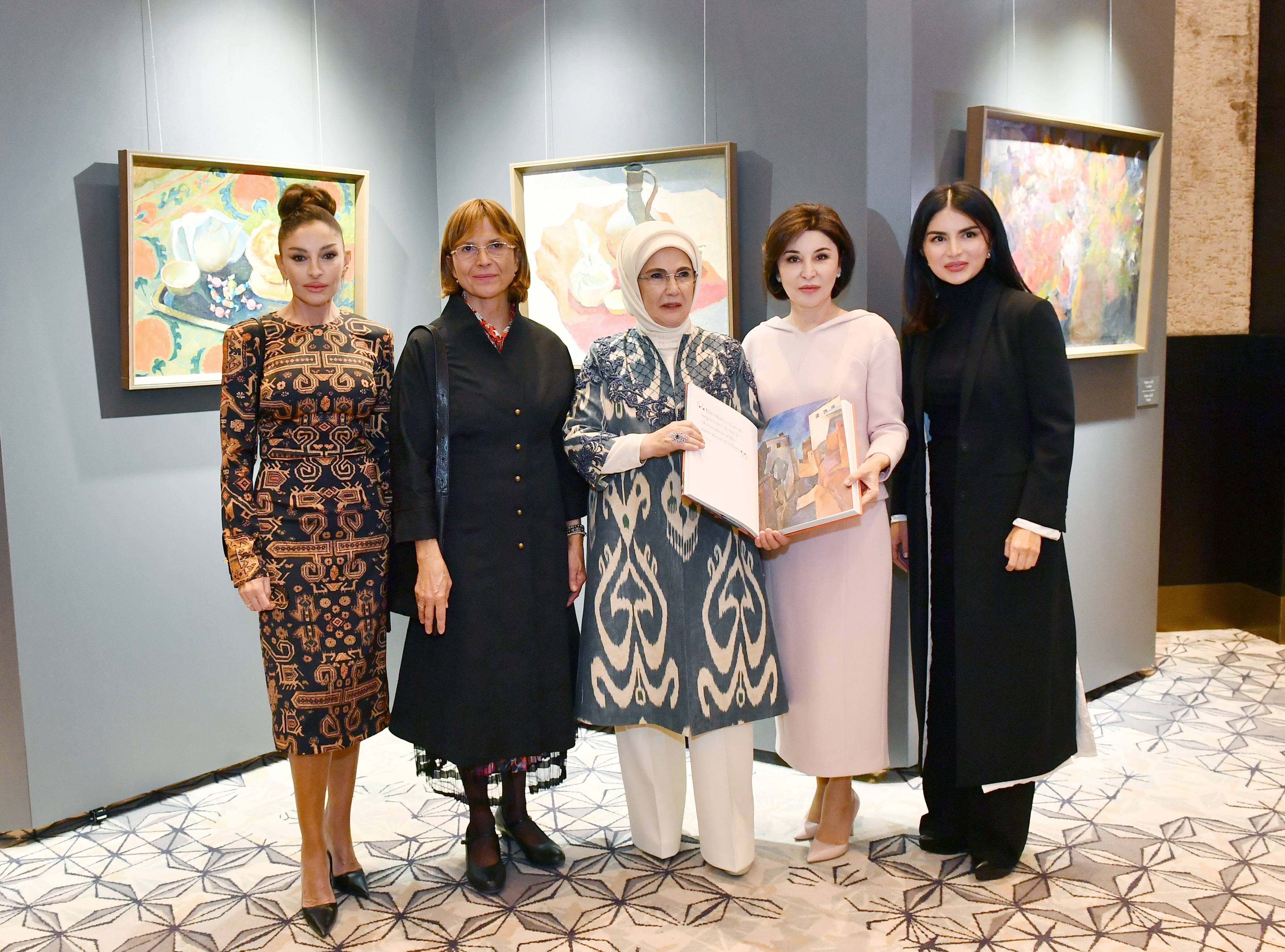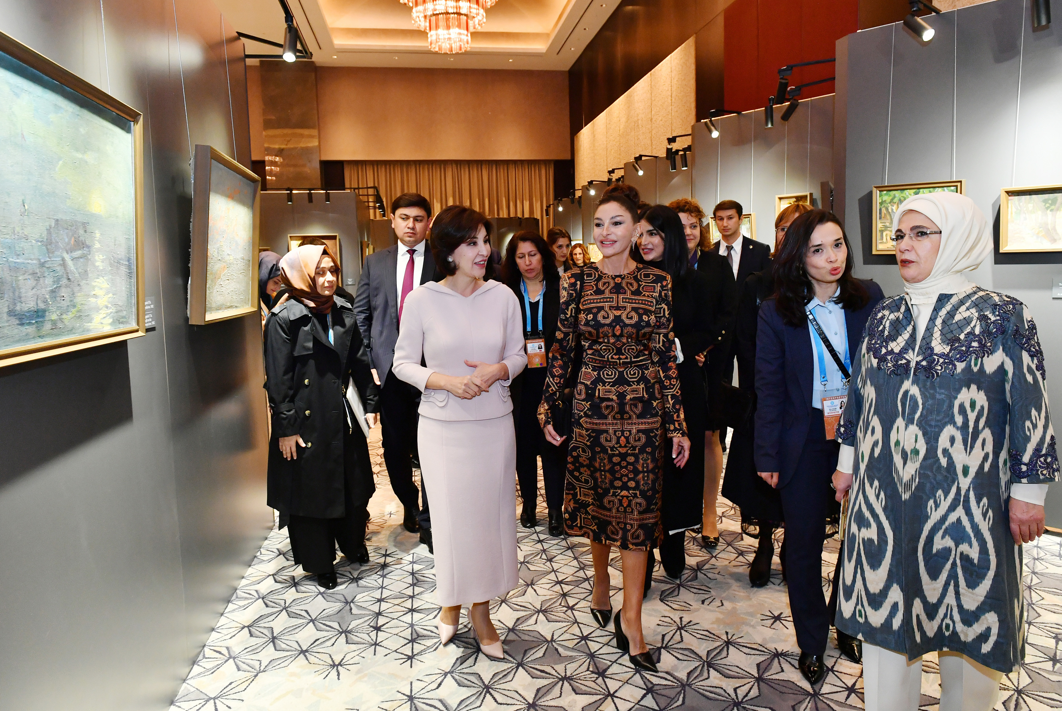 APA xəbər verir ki, Azərbaycanın birinci xanımı Mehriban Əliyeva, Özbəkistanın birinci xanımı Ziroatxon Mirziyoyeva, Türkiyə Respublikasının birinci xanımı Əminə Ərdoğan, Macarıstanın Baş nazirinin xanımı Aniko Levai birlikdə sərgiyə baxıblar.