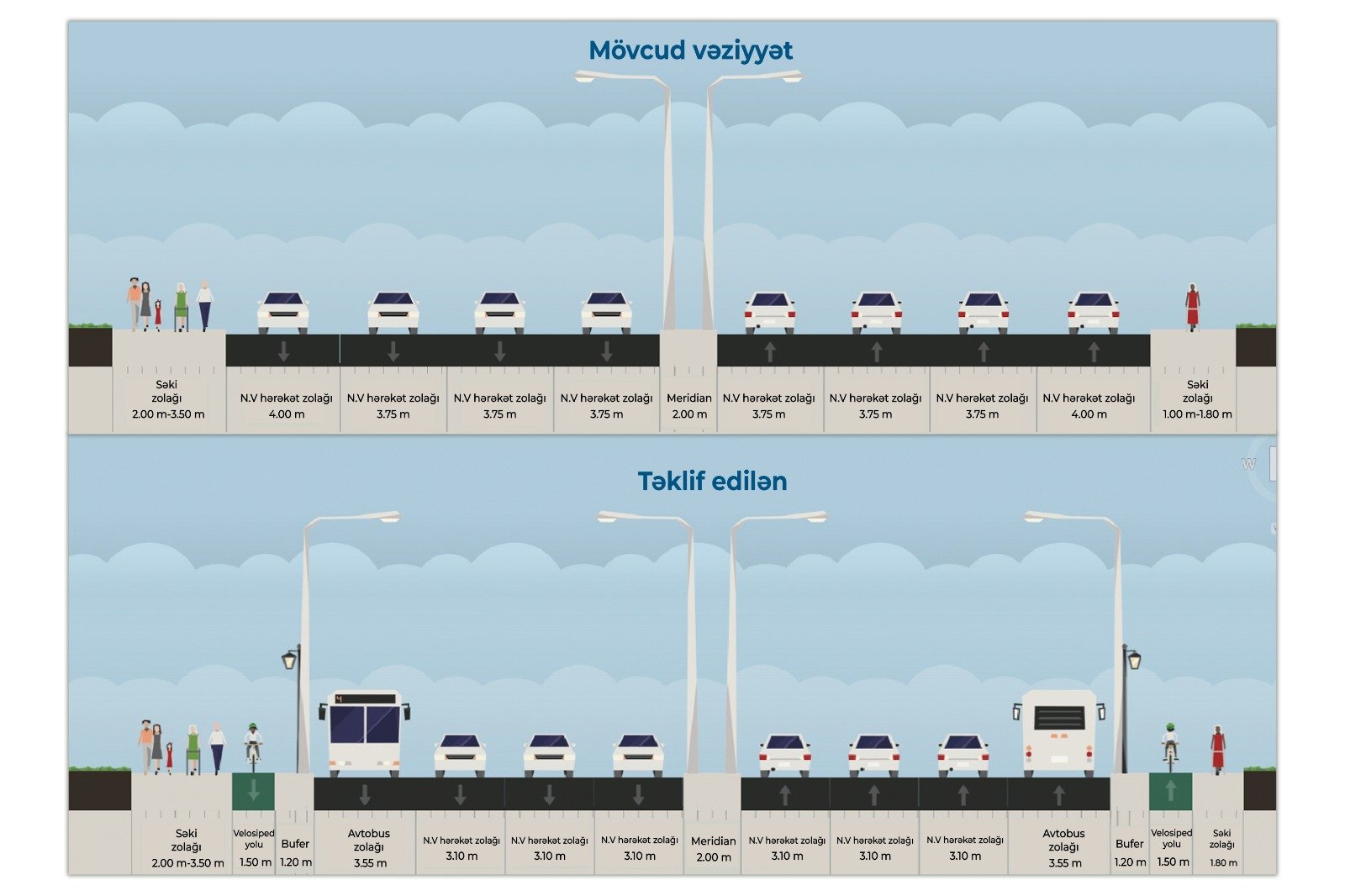 "İctimai nəqliyyat hərəkət cədvəlinə uyğun fəaliyyət göstərir, onun tıxacda qalması və ləngiməsi bütün xətt boyunca intervalların pozulmasına gətirib çıxarır. Buna görə də avtobus üstünlüyünün təmin edilməsi məhz tıxac olan küçələrdə lazımdır. 8 Noyabr prospektində nəqliyyat vasitələrinin hərəkət istiqamətində, prospektin sağ və sol kənarlarında ümumi uzunluğu 10 km-ə yaxın velosiped yolları da salınacaq. Sözügedən velosiped yolları “bufer zona”lar vasitəsilə yolun nəqliyyat vasitələri üçün nəzərdə tutulmuş hissəsindən ayrılacaq. İşlər yekunlaşdıqdan sonra 8 Noyabr prospektinin kənarlarında yerləşən yaşayış sahələri, sonda isə Xətai rayonunda yerləşən Polad Həşimov qəsəbəsi şəhər mərkəzi ilə əlaqələndiriləcək. Həmin yaşayış sahələrinin sakinlərinin mikromobillik zolaqlarına əlçatanlığı təmin ediləcək. Növbəti mərhələlərdə isə həmin velosiped yolları şəhər mərkəzindəki mikromobillik zolaqları ilə əlaqələndiriləcək", - deyə məlumatda qeyd olunub.