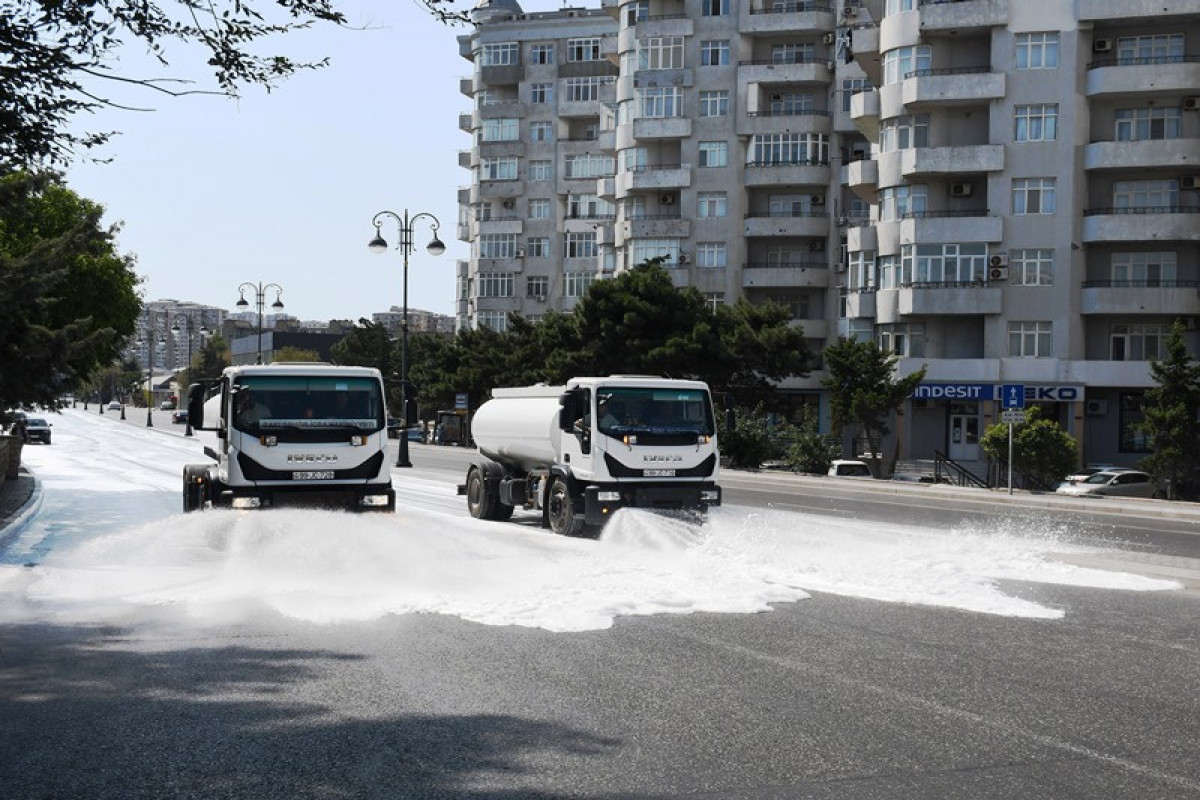 Bakı Şəhər İcra Hakimiyyətindən = verilən xəbərə görə, qurumun Kommunal təsərrüfat xidmətlərinin texnikası səhər saatlarından etibarən əsas küçə və prospektlərin bitki və canlılara ziyansız yuyucu maddələrlə yuyulmasını aparıb. İməcilik zamanı həm də məhəllədaxili və ara yollar da yuyulub. Xidmətin əməkdaşları tərəfindən prospekt və küçələrin, səki kənarlarının, bordürlərin və buradakı işıq dirəklərinin, yol kənarındakı məhəccərlərin, park və istirahət yerlərində oturacaqların yuyulmasını həyata keçirilib, həyət və yaşayış məhəllələrində təmizlik işləri görülüb.