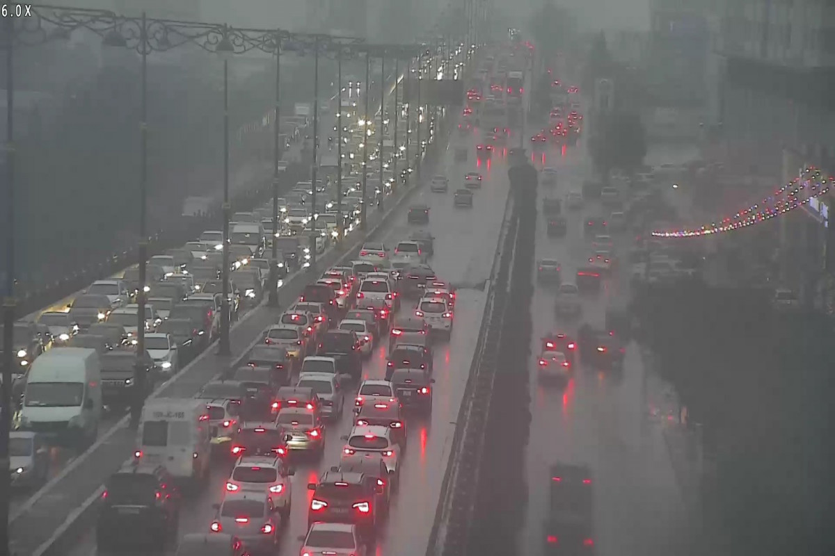 Bakıda körpünün üzərində yaranmış çökmə tıxaca səbəb olub.