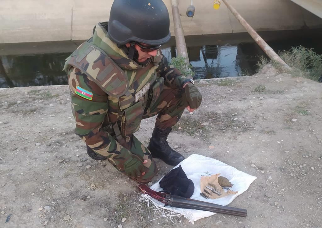 Hüquq-mühafizə orqanı əməkdaşları ilə birgə ərazidə müvafiq təhlükəsizlik tədbirləri görüldükdən sonra hadisə yerinə baxış zamanı aşkar edilmiş istifadəyə yararlı 1 ədəd F-1 əl qumbarası, 1 ədəd UZRQM partladıcısı, 3 ədəd 5x45mm PS mərmi, 1 ədəd lüləsi kəsilmiş “TOZ-63” 16 mm kalibrli ov tüfəngi götürülüb.