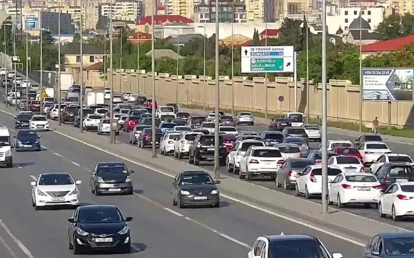 Bakının bir sıra yollarında nəqliyyatın sıxlığı müşahidə edilir.