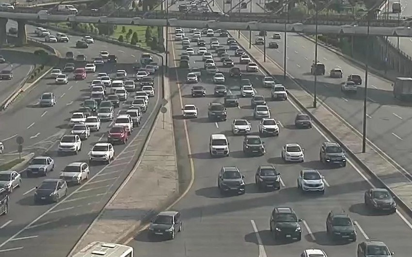 Bakının bir sıra yollarında nəqliyyatın sıxlığı müşahidə edilir.