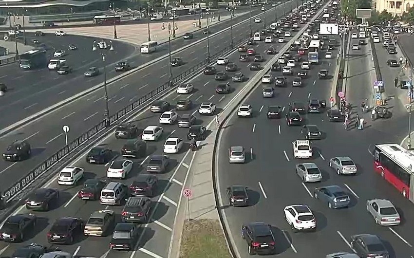 Bakının bir sıra yollarında nəqliyyatın sıxlığı müşahidə edilir.
