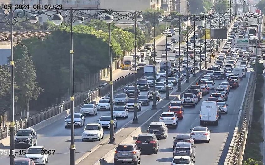 Bakının bir sıra yollarında nəqliyyatın sıxlığı müşahidə olunur.