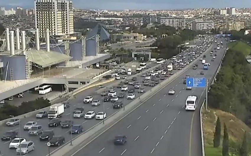 Bakının bir sıra yollarında nəqliyyatın sıxlığı yaranıb.
