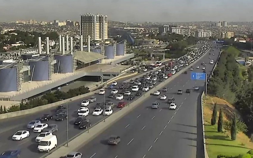 Bakının bir sıra yollarında nəqliyyatın sıxlığı yaranıb.