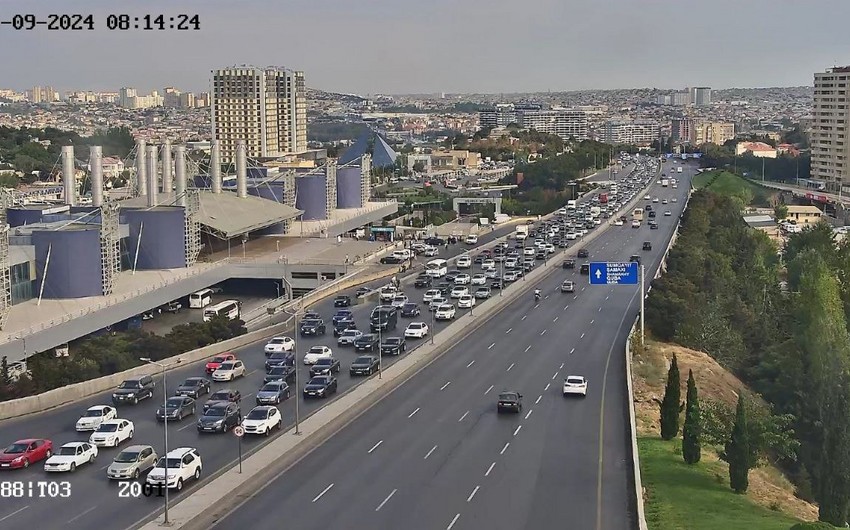 3. Heydər Əliyev prospekti, əsas yol, mərkəz istiqamətində sıxlıq müşahidə olunur.