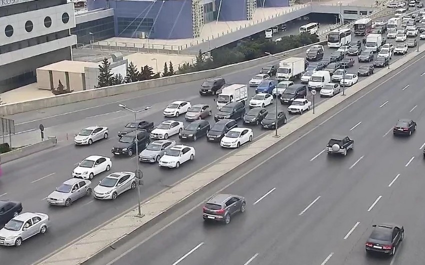 Bakının bir sıra yollarında sıxlıq yaranıb.