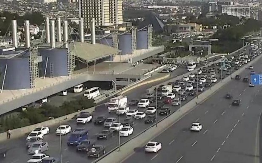 Bakının bir sıra yollarında tıxac yaranıb.