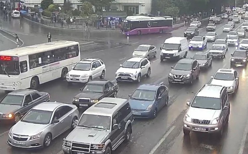 Bakının bir sıra yollarında tıxac yaranıb.