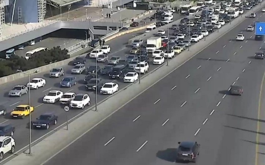 Bakının bir sıra yollarında tıxac yaranıb.