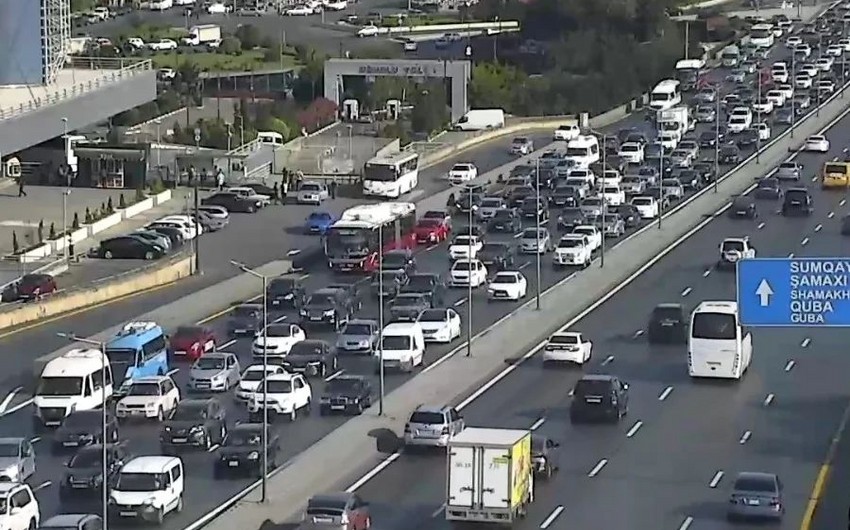 Bakının bir sıra yollarında tıxac yaranıb.