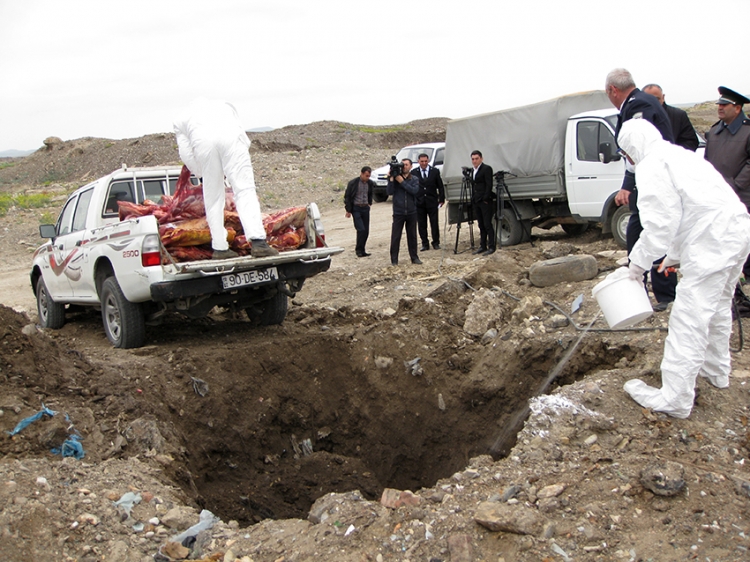 Laboratoriya müayinələrinin nəticəsinə uyğun qəbul edilmiş qərara müvafiq olaraq həm Ağcabədi, həm də Zərdab rayonlarından gətirilən mənşəyi məlum olmayan, keyfiyyətsiz, baytarlıq-sanitariya cəhətdən yararsız, aqoniya və ya öldükdən sonra kəsilmiş heyvan ətləri Sumqayıt şəhər Məişət Tullantıları Poliqonunda KİV və digər aidiyyəti qurumların əməkdaşlarının iştirakı ilə baytarlıq-sanitariya tələblərinə uyğun zərərsizləşdirilib.