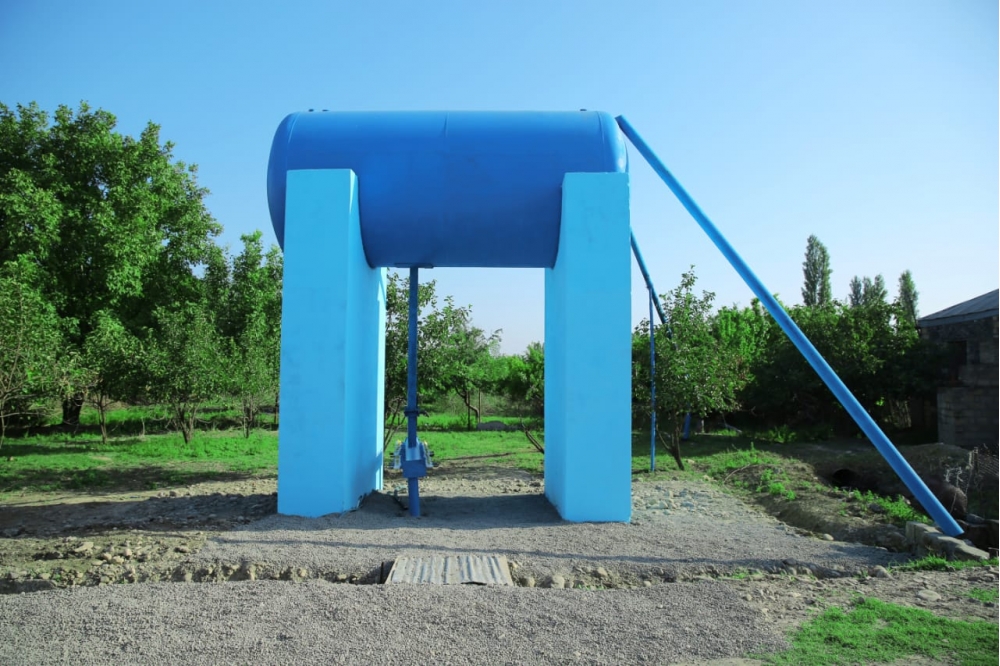 Вurada əhalinin içməli suyuna tələbatının ödənilməsi üçün 120-dən çox fərdi evə xidmət göstərilməsi nəzərdə tutulan 40 tonluq su çəni quraşdırılıb.