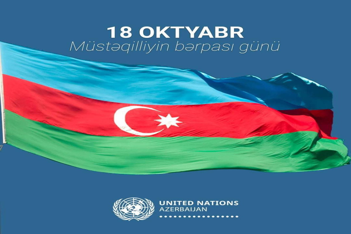 "Birləşmiş Millətlər Təşkilatı Müstəqilliyin Bərpası Günü münasibətilə Azərbaycan xalqını təbrik edir! Əbədi müstəqillik, əmin-amanlıq və dayanıqlı inkişaf arzulayırıq!", paylaşımda qeyd olunub.