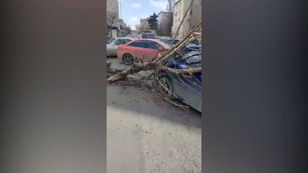 Güclü külək irigövdəli ağacı avtomobil üzərinə aşırıb.