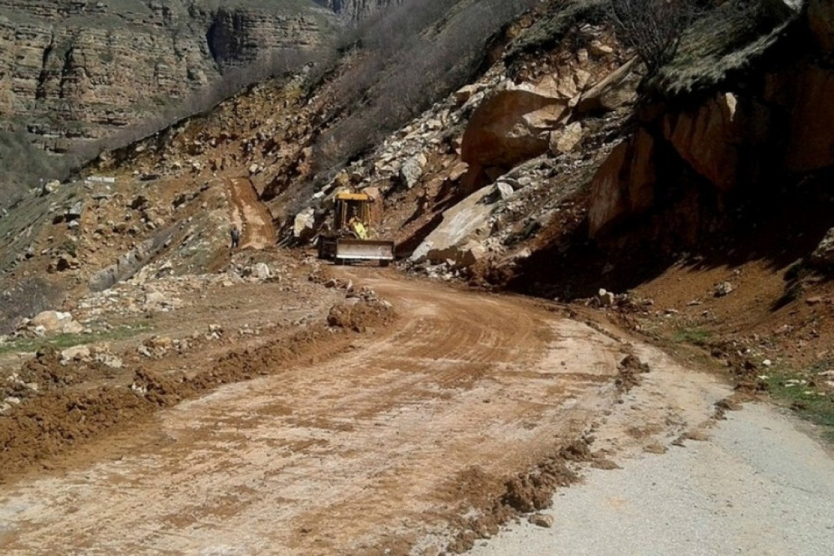 Sel suları nəticəsində yola qaya parçaları düşüb.