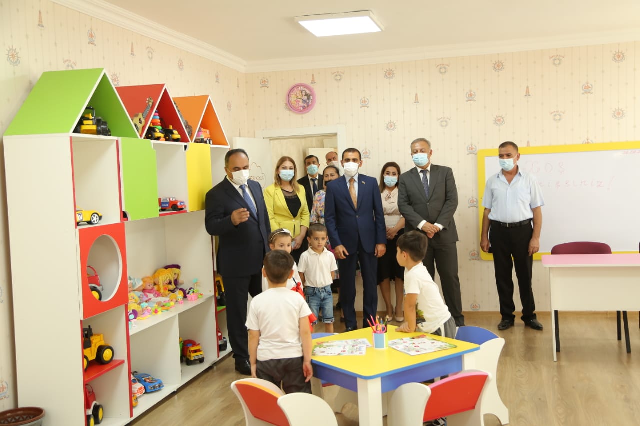 Rayon İcra Hakimiyyətinin başçısı Məhərrəm Quliyev, Milli Məclisin deputatı Anar Məmmədov və Heydər Əliyev Fondunun nümayəndəsi Ceyhun Aslanov körpələr evi-uşaq bağçasında yaradılan şəraitlə tanış olublar. 95 yerlik uşaq bağçasında uşaqların təlim-tərbiyəsi, ilk yaşlarından intellektual, fiziki və əqli inkişafı, istedad və qabiliyyətlərinin üzə çıxarılması, sağlamlıqlarının qorunması üçün hər cür şərait yaradılıb. Bina yataq, oyun, tibb, məşğələ, yemək, musiqi və idman zalı, mətbəx və anbardan ibarətdir. Burada azyaşlıların təlim və tərbiyəsi üçün hər cür şərait yaradılıb. Bununla da rayonda mövcud olan üç körpələr evi-uşaq bağçasından ikisi müasir standartlara cavab verir. Hazırda Goranboy rayonunda ümumilikdə 32 uşaq bağçası fəaliyyət göstərir ki, onlardan da təmirə ehtiyacı olanlar zamanla yenilənir.