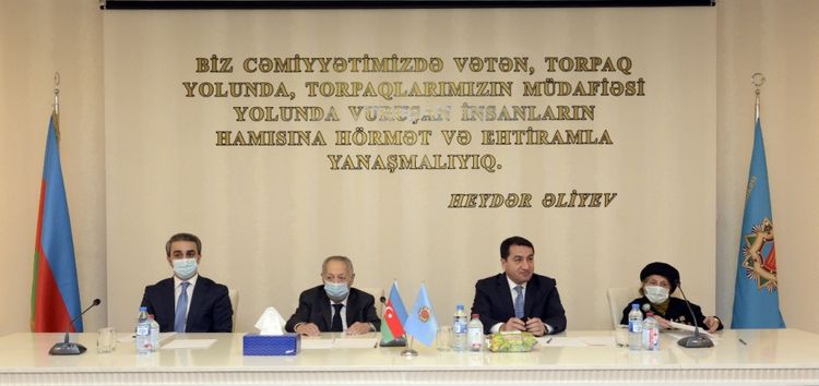 Hikmət Hacıyev Respublika Veteranlar Təşkilatının qarşısında ciddi vəzifələrin durduğunu diqqətə çatdırıb, qurumun yerlərdə fəaliyyətinin gücləndirilməsinin, veteranları narahat edən problemlərin öyrənilərək müvafiq qurumların diqqətinə çatdırılmasının, beynəlxalq veteranlar təşkilatları ilə əlaqələrin genişləndirilməsinin, veteranlarla iş sahəsində beynəlxalq təcrübənin öyrənilərək tətbiq edilməsinin vacibliyini vurğulayıb. O, ölkə başçısının müvafiq Fərmanı ilə bir neçə gün öncə yerli icra hakimiyyətlərində Vətən müharibəsi iştirakçıları və şəhid ailələri ilə işin təşkili şöbəsinin yaradıldığını qeyd edərək, Veteranlar Təşkilatının həmin şöbələrlə əməkdaşlığının əhəmiyyətini bildirib.