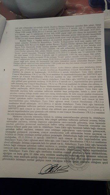 "Bu barədə mətbuata məlumat verilməmişdən əvvəl məhkəmə həbs qəti imkan tədbiri seçilmişdi. 3 aydan sonra məhkəmə həbs müddətini uzatmadığına görə o, azad olunmuşdu. Sonra digər epizodlar ortaya çıxdı. Həmin epizodlara görə, Yunis Abdullayev 11 noyabrda məhkəmənin qərarı ilə həbs olunub”.