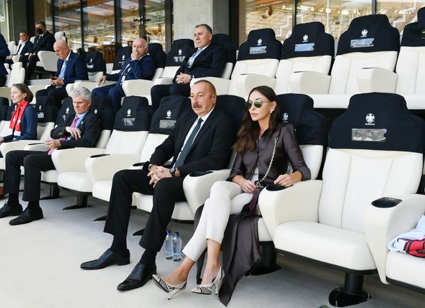 Azərbaycan Respublikasının Prezidenti İlham Əliyev və birinci xanım Mehriban Əliyeva A qrupunun Bakı Olimpiya Stadionuna keçirilən Uels-İsveçrə matçına baxıblar.