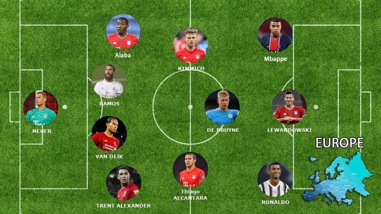 İFFHS-ın Avropa ölkələrində olan nümayəndələri arasında səsverməyə əsasən “Köhnə qitə” yığması bəlli olub. Almaniya “Bavariya”sı daha çox – 5 oyunçu ilə komandada təmsil olunub. Onlardan biri ilin yarısını Münhen klubunda keçirib.