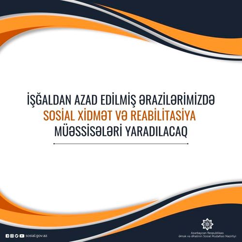 Prezident, Ali Baş Komandan İlham Əliyevin rəhbərliyi ilə müzəffər Ordumuzun işğaldan azad etdiyi ərazilərimizdə geniş miqyasda quruculuq və abadlıq, habelə sosial infrastrukturun qurulması işləri çərçivəsində sosial xidmətlər və reabilitasiya müəssisələrinin yaradılması da təmin olunacaq.