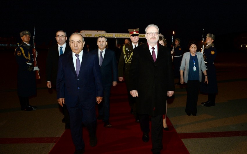 Latviya Prezidenti Egils Levitsi Azərbaycanın Baş nazirinin birinci müavini Yaqub Eyyubov, xarici işlər nazirinin müavini Xələf Xələfov və digər rəsmi şəxslər qarşılayıblar.
