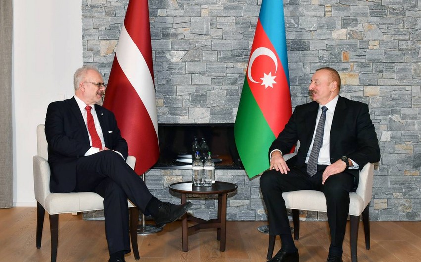 Hər iki ölkənin Dövlət bayraqlarının dalğalandığı meydanda Latviya Prezidentinin şərəfinə fəxri qarovul dəstəsi düzülüb.