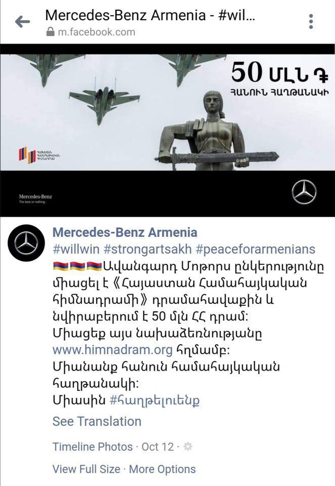 “Mercedes” şirkəti Qarabağdakı separatçılara maddi dəstək verib.