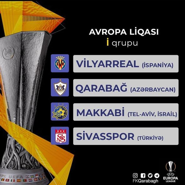 Qeyd edək ki, qrup mərhələsinə 22 oktyabrda start veriləcək. Komandamız ilk oyununu “Vilyareal”a qarşı keçirəcək. “Qarabağ” qrupda son matçına dekabrın 10-da çıxacaq.