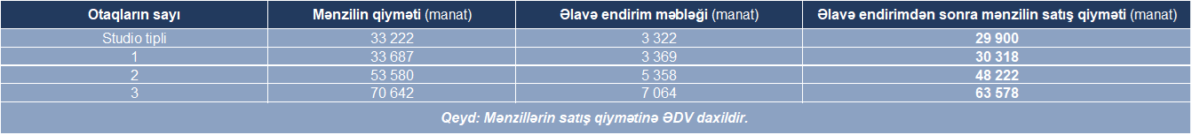 3 otaqlı mənzillərin qiyməti – 61 897 manatdan,