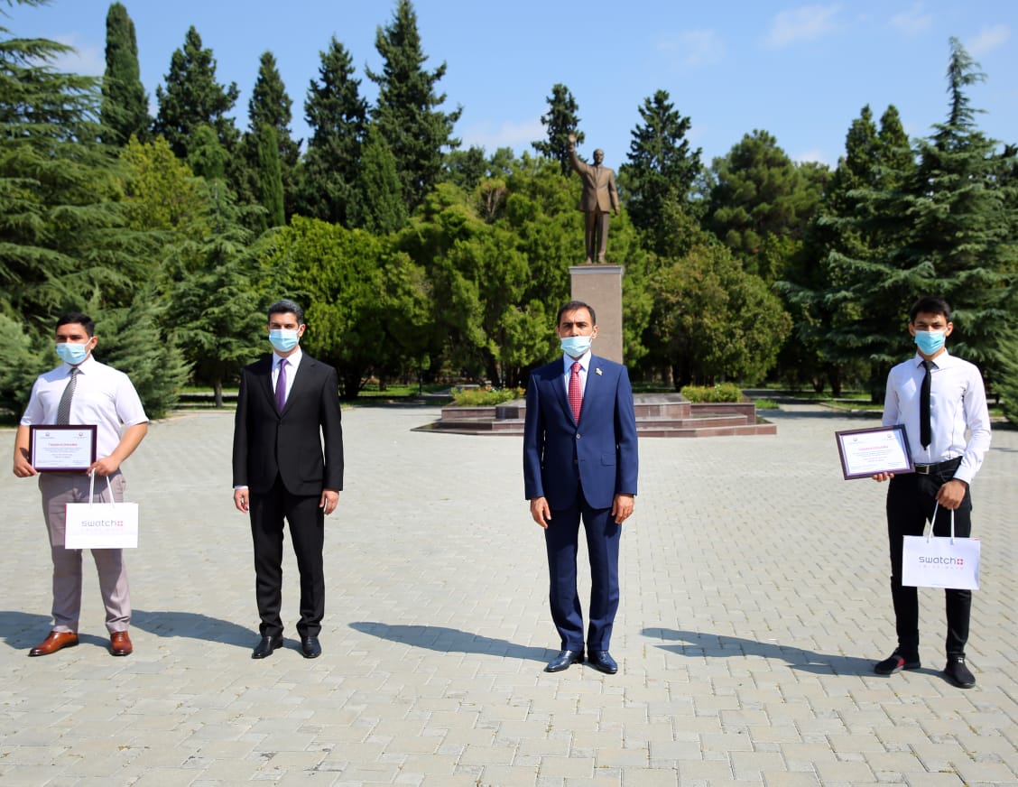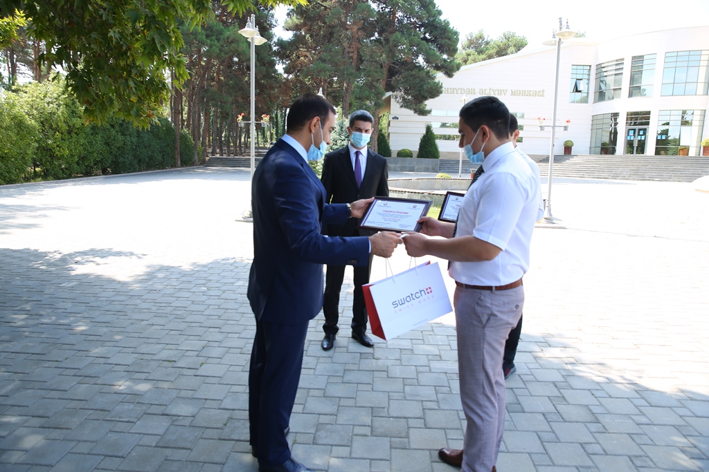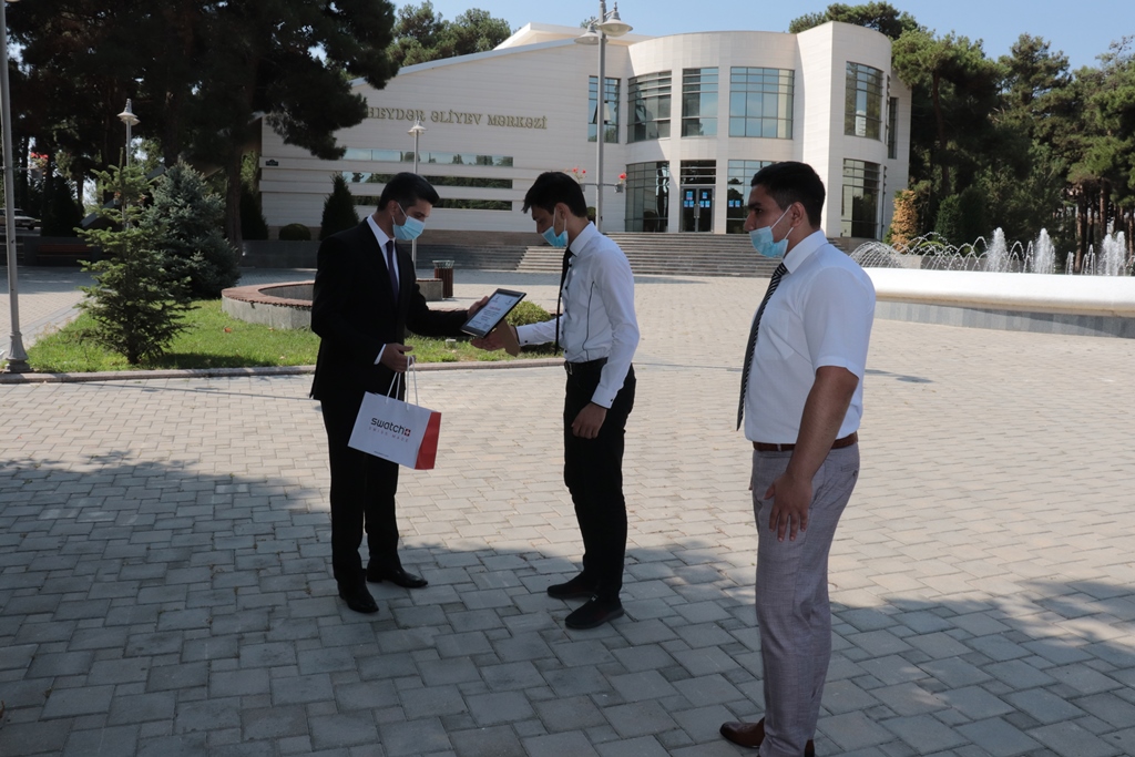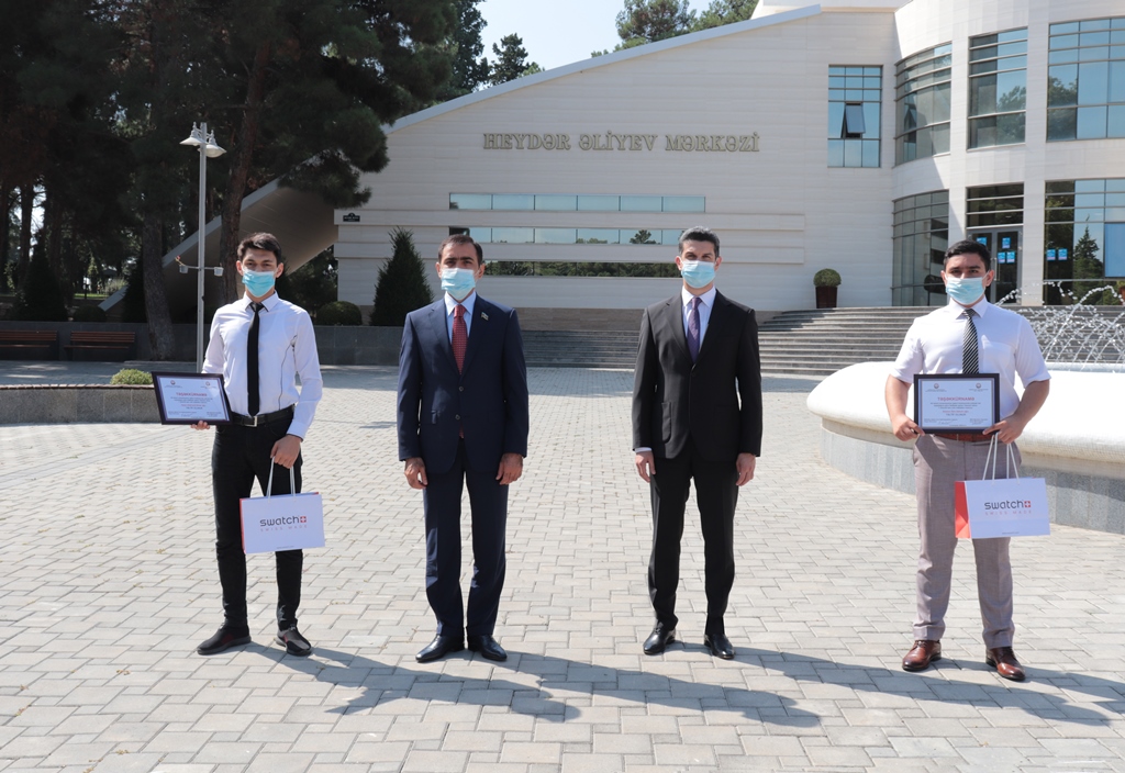 Sonra 600 baldan yuxarı nəticə göstərmiş şəhər İ.Nəsimi adına 1 nömrəli tam orta məktəbin məzunları İsayev Allahverdi Elmar oğluna və İslamov İlkin Səbuhi oğluna İcra Hakimiyyətinin başçısı və Millət vəkili tərəfindən təşəkkürnamə və hədiyələr təqdim olunub.