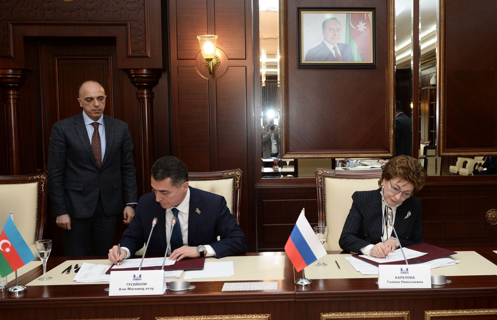 Milli Məclisin Mətbuat və ictimaiyyətlə əlaqələr şöbəsindən verilən xəbərə görə, iclasa Milli Məclis sədrinin birinci müavini Əli Hüseynli və Rusiya Federasiyası Federal Məclisinin Federasiya Şurasının sədr müavini Qalina Karelova həmsədrlik ediblər.