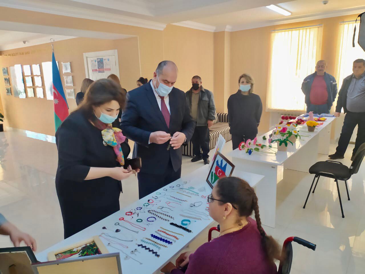 Əvvəlcə xüsusi istedadı və qabiliyyəti ilə seçilən fiziki məhdudiyyətli əlillərin əl işlərindən təşkil olunmuş sərgiyə baxış keçirilib.