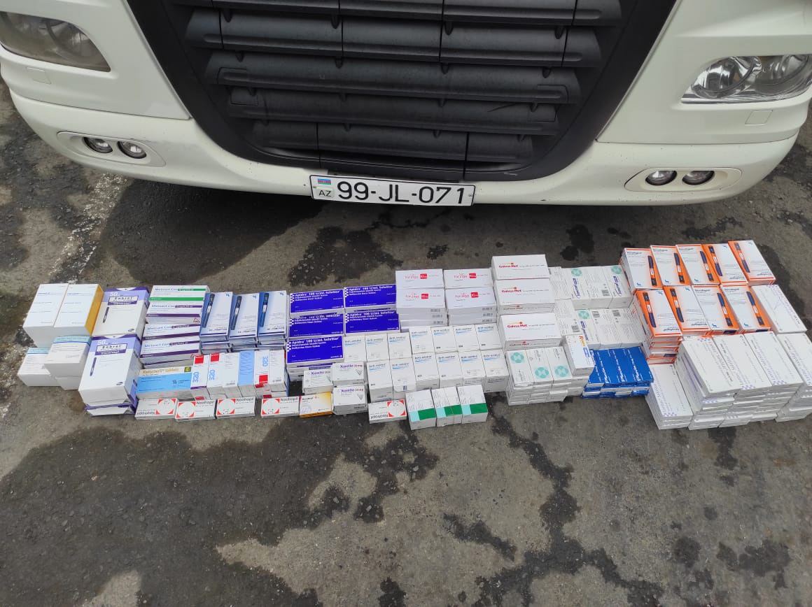 Baxış zamanı yük nəqliyyat vasitəsinin salonunun yuxarı hissəsində olan boşluqlarda və yataq yerində söykənəcəyin arxasında gizlədilən 19 adda 313 qutu dərman preparatları aşkarlanıb".