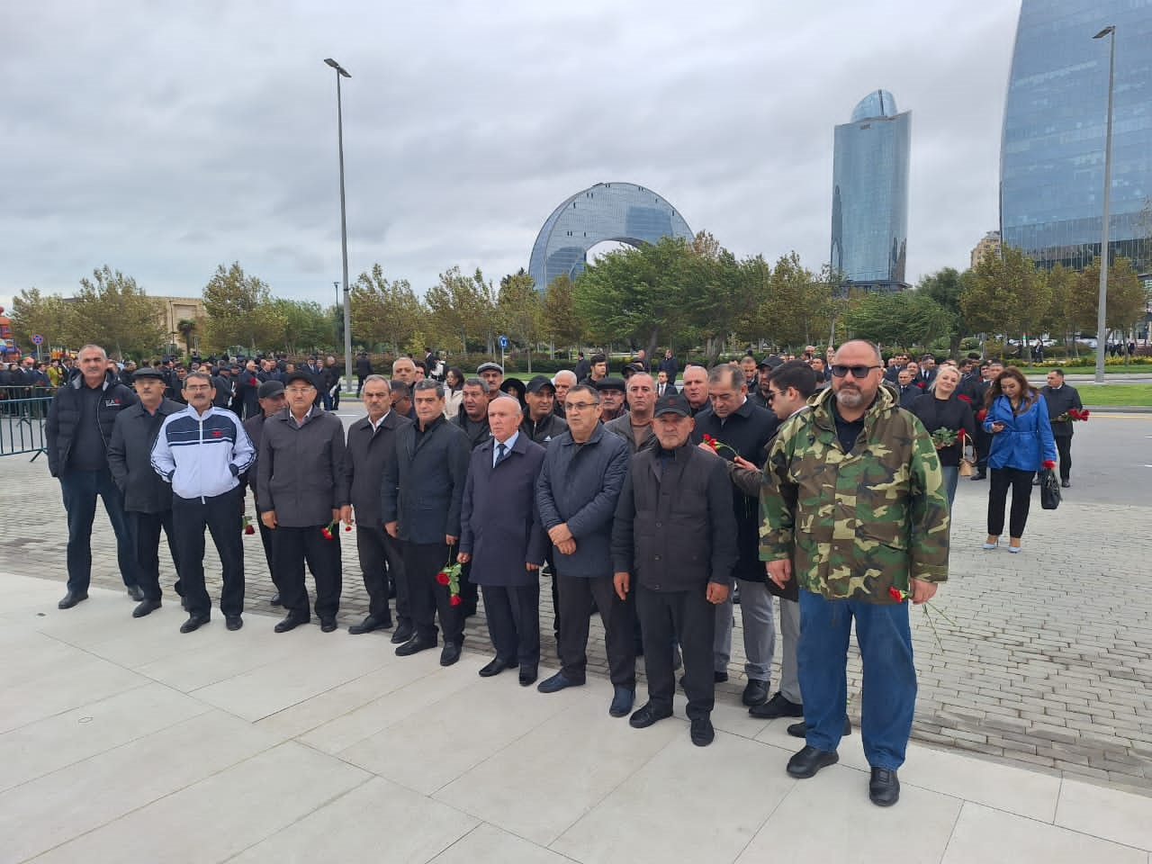 Zəfər abidəsinin önünə gül dəstələri düzülüb.