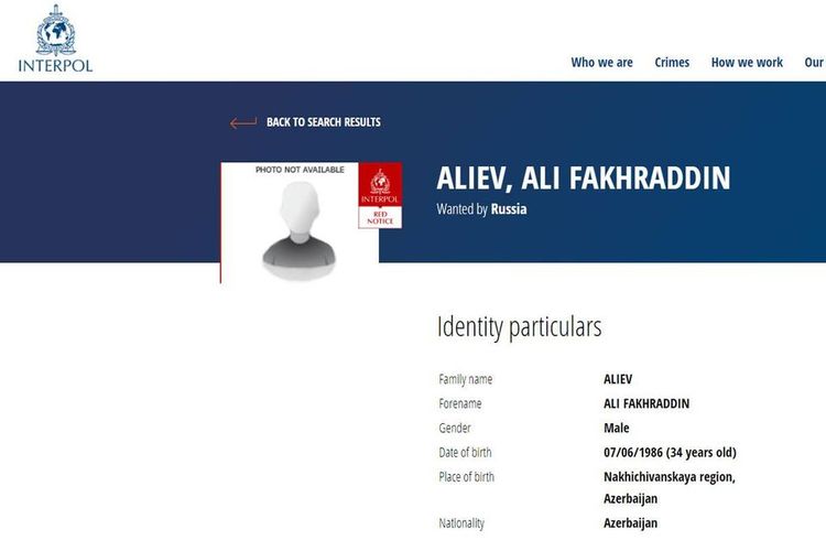 Bu barədə İnterpolun saytında məlumat yerləşdirilib.