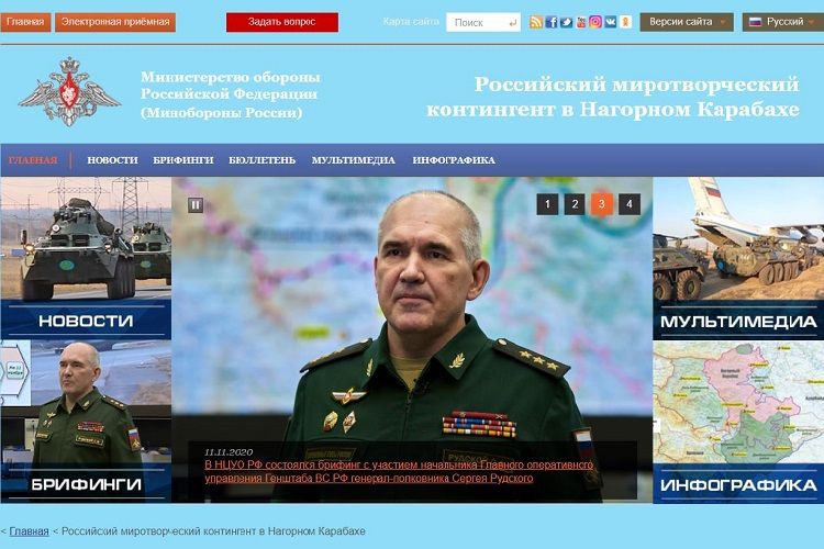 Rusiya Müdafiə Nazirliyinin rəsmi saytında “Dağlıq Qarabağda Rusiya sülhməramlı kontingenti” adlı xüsusi bölmə yaradılıb.