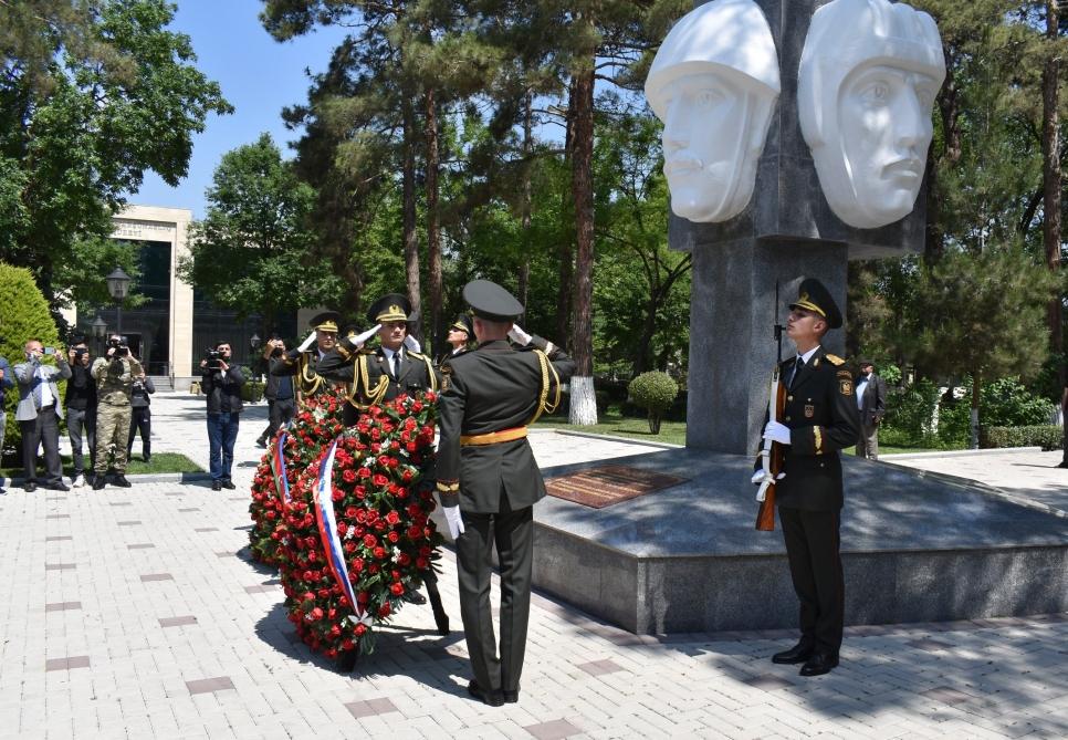 Əvvəlcə “Azərbaycan İkinci Dünya müharibəsi illərində”, “Heç kim unudulmur, heç nə yaddan çıxmır” və iki dəfə Sovet İttifaqı qəhrəmanı adını almış Həzi Aslanova həsr edilən fotosərgiyə, eləcə də müharibədə şərəfli döyüş yolu keçən Azərbaycan milli diviziyalarının döyüş bayraqlarına baxış olub. Hərbi orkestrin müşayiəti ilə Azərbaycan Respublikası və Rusiya Federasiyası hərbiçiləri adından İkinci Dünya müharibəsində iştirak etmiş həmvətənlərimizin xatirəsinə ucaldılan memorial kompleksin qarşısına əklillər qoyulub və müharibədə həlak olanların xatirəsi bir dəqiqəlik sükutla yad edilib.