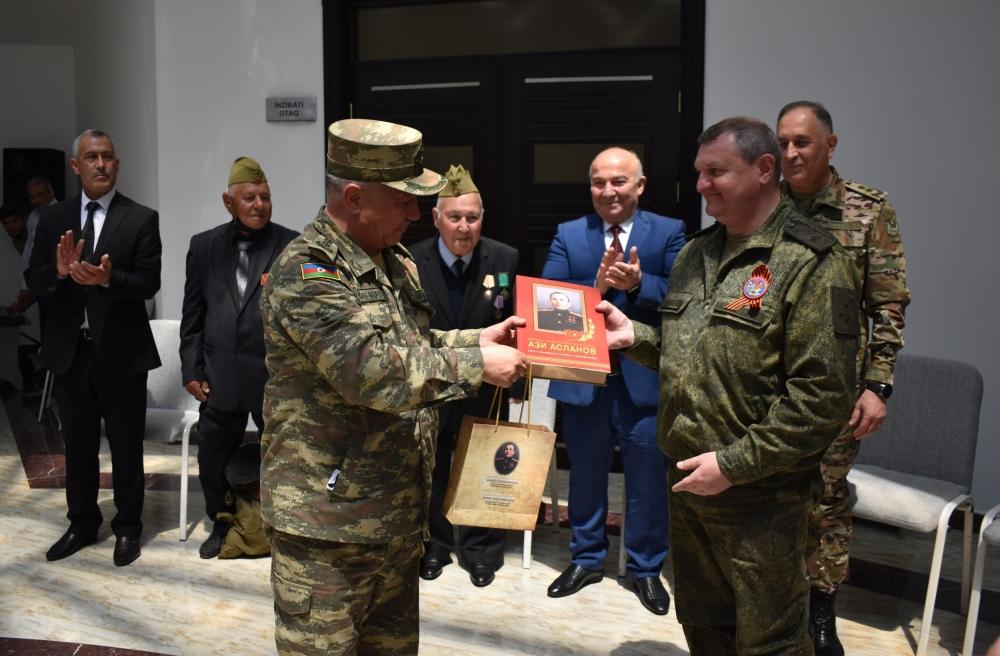 Qələbənin varisləri adından iki dəfə Sovet İttifaqı qəhrəmanı Həzi Aslanovun nəvəsi Emin Aslanov çıxış edib. Tədbir iştirakçılarına Həzi Aslanov haqqında Abdulla Qurbaninin yazdığı (rus dilində) “İki dəfə Sovet İttifaqı qəhrəmanı Həzi Aslanov” albom-kitabı və Azərbaycan döyüşçülərinin müharibədəki uğurlarını əks etdirən filmlərdən ibarət disklər hədiyyə olunub.